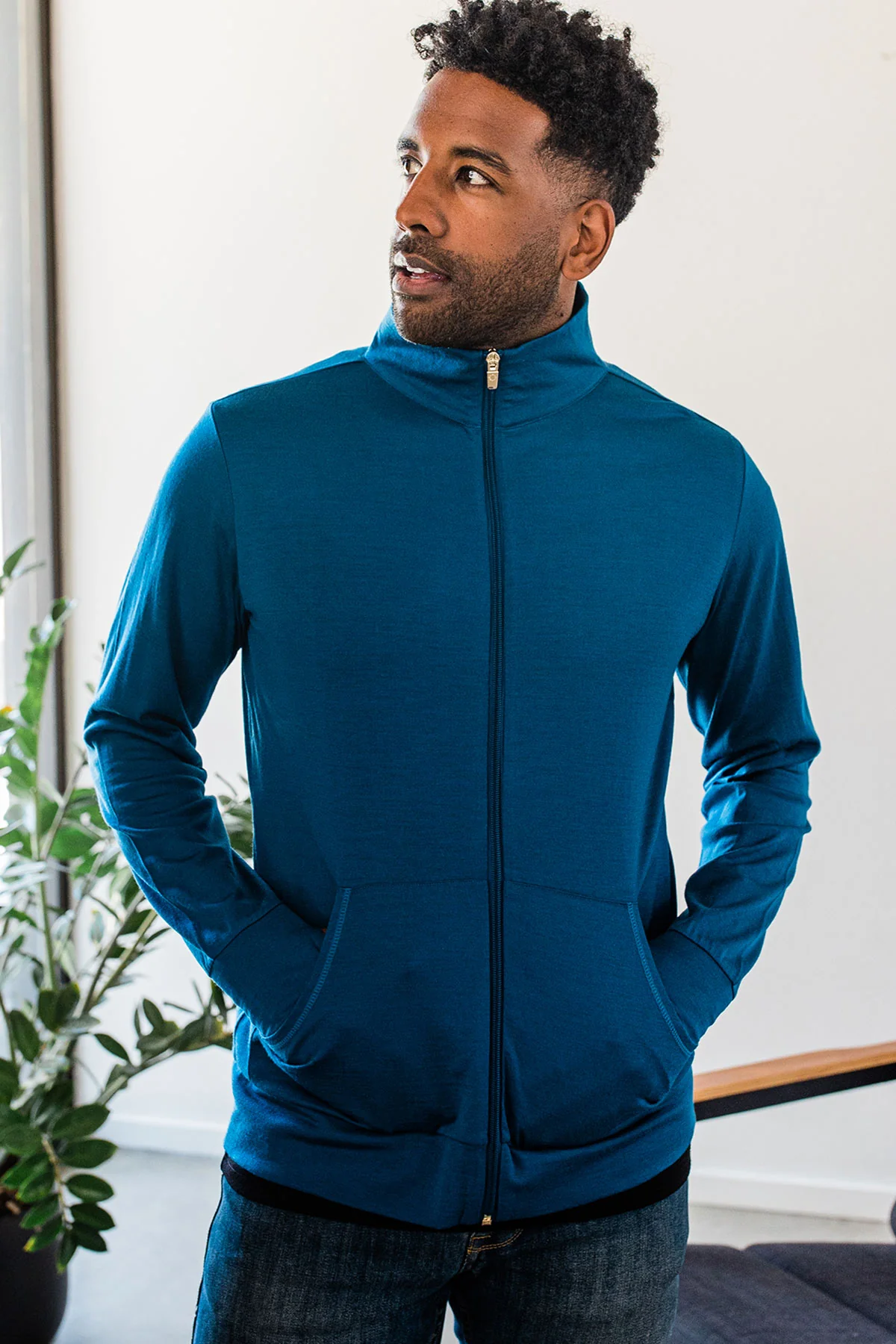 Get the performance of 100% pure wool without the itchiness. Full-length sleeve and mock neck, for all genders. This lightweight jacket zips up the front with two diagonal side pockets.