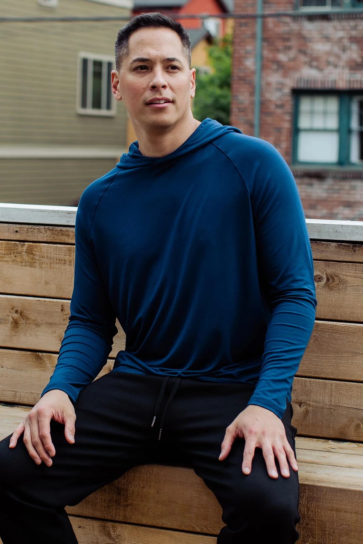 Men's Travis Hooded Long Sleeve Raglan Bamboo Tee Shirt
